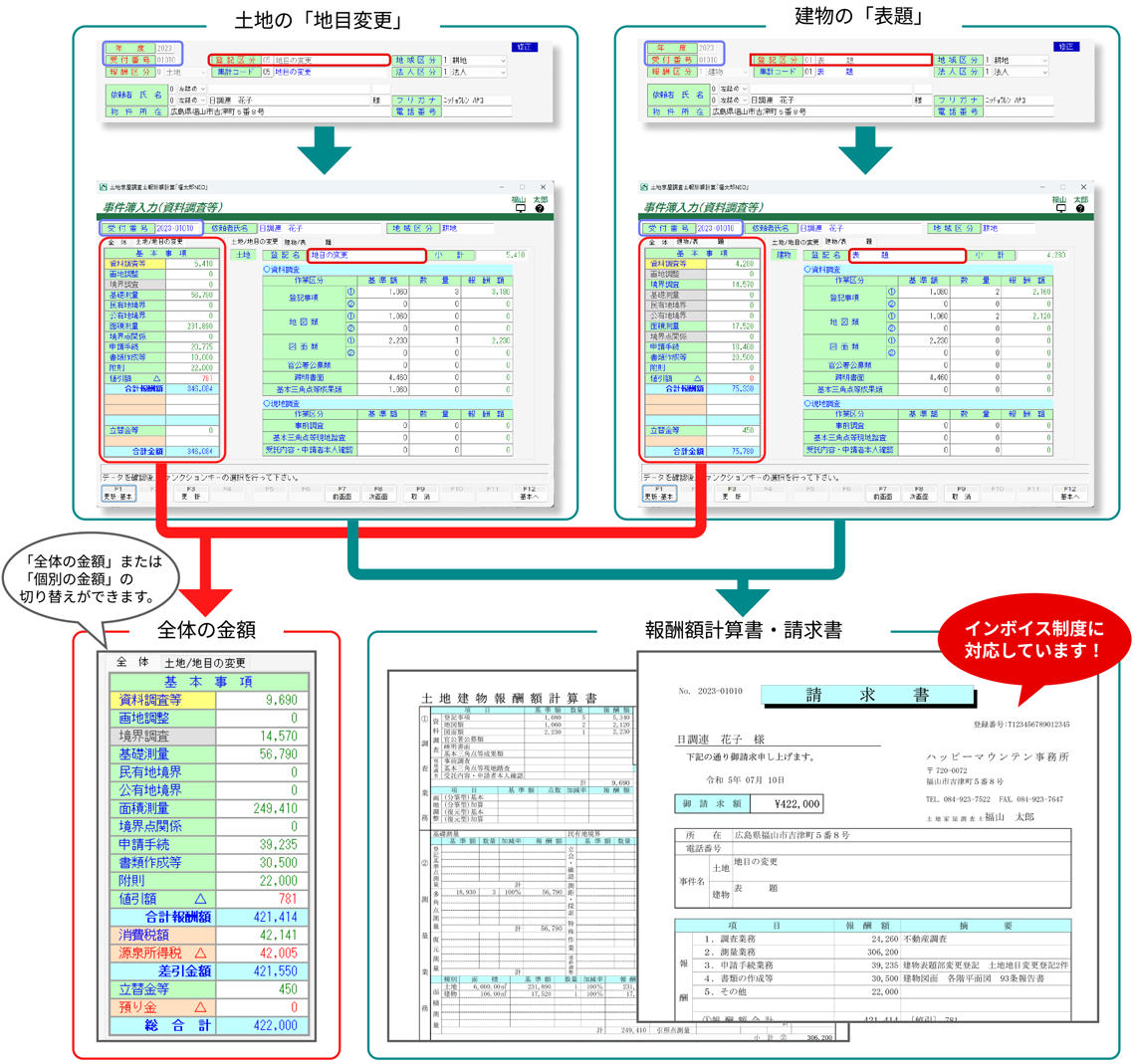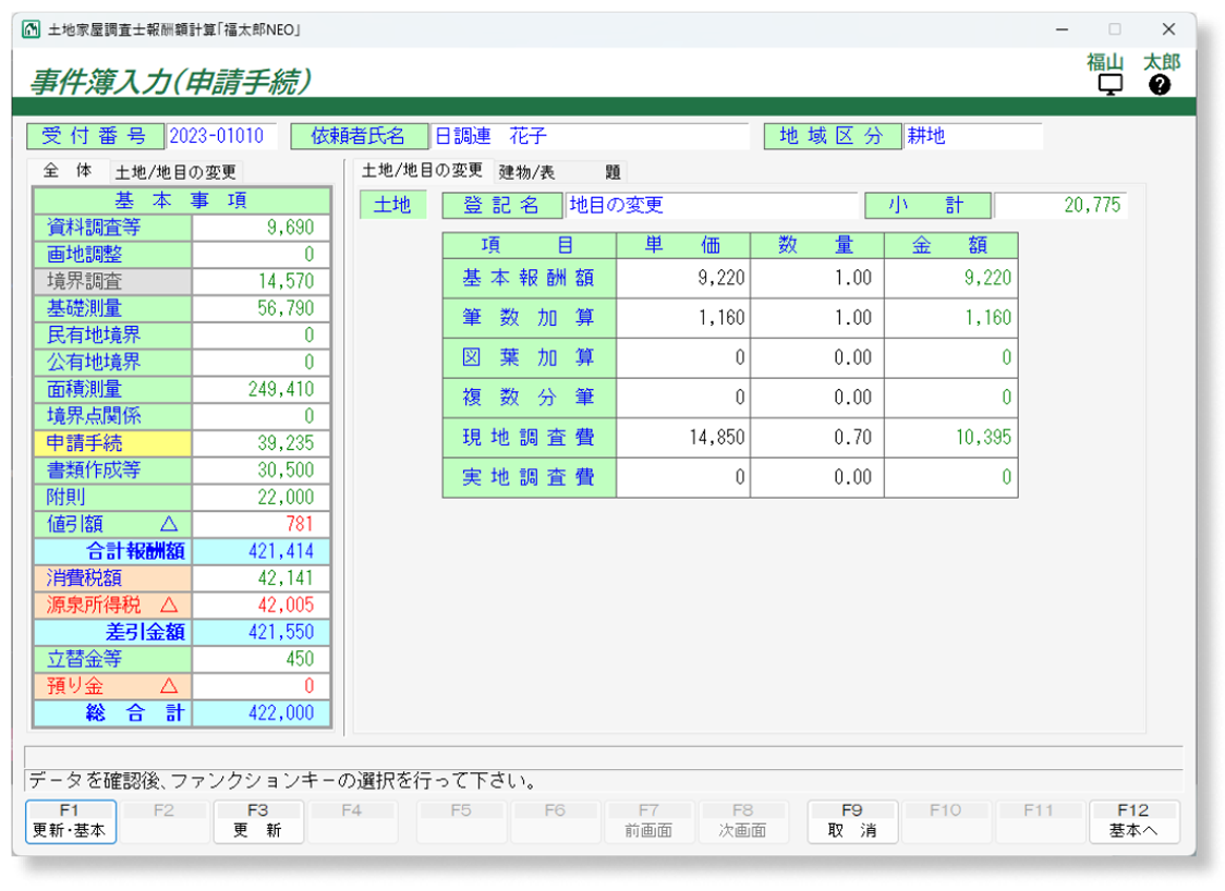 土地家屋調査士のための報酬計算+帳票作成ソフト