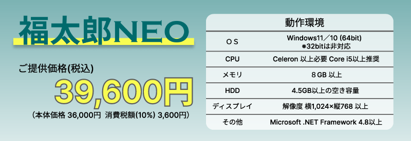 ※消費税は標準税率のみの使用を前提としております。軽減税率対応はしておりません。